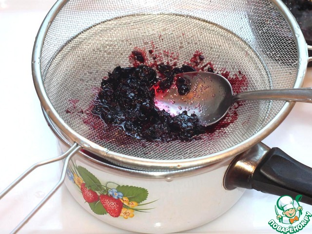 Пока выпекаются сырники приготовим кисель. Выжимаем сок из ягод или перетираем через сито.