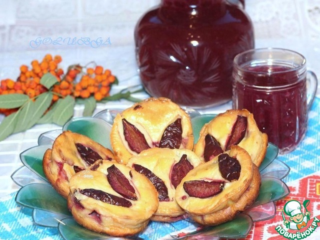 Добавляем сливу в творожную массу и аккуратно перемешиваем.
