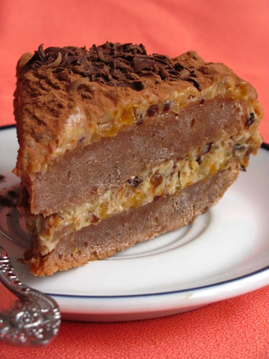Готовый корж разрезаем на 2 части, коржи смазываем сахарным сиропом или коньяком, чтобы были сочными, потом смазываем кремом и складываем коржи. Сверху тоже смазать оставшимся кремом и выкладываем форму пики шоколадом, и обязательно в холод!Угощайтесь на здоровье!