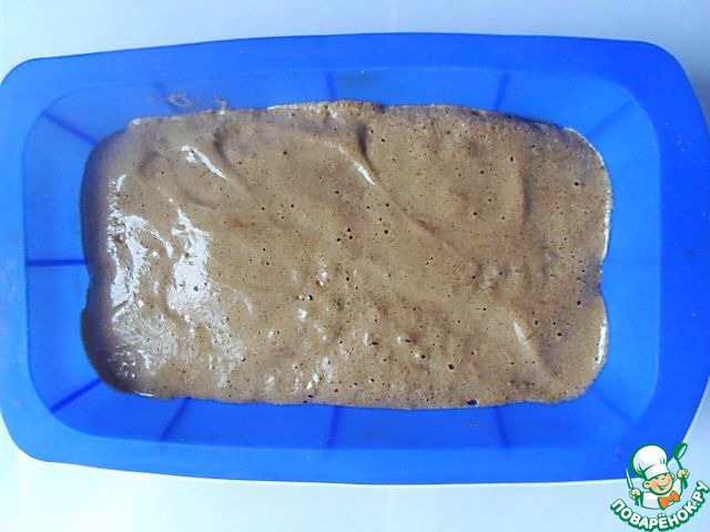 Выливаем тесто в форму, несколько раз слегка ударяем формой по столу, чтобы выбить крупные пузырьки воздуха. Лучше всего для выпекания этого бисквита подойдет прямоугольная несиликоновая форма. У меня таковой не было и я использовала ту, что была ближе всего к рекомендуемой. Если Вы - счастливый обладатель несиликоновой формы, не смазываете ее маслом перед выпеканием, здесь бисквит должен прилипнуть ко дну и стенкам формы, почему - будет понятно в следующем шаге. Выпекаем в заранее разогретой духовке 25 минут при температуре 180 градусов Цельсия до сухой лучинки.