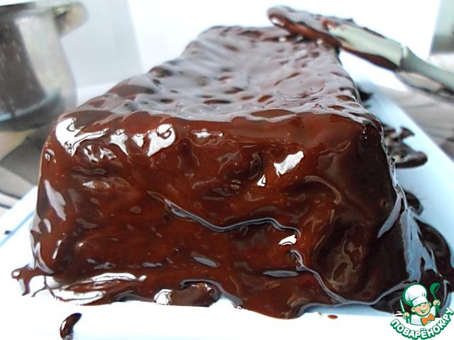 Растапливаем в кастрюльке на медленном огне шоколад и размягченное сливочное масло. Обливаем глазурью всю поверхность бисквита.