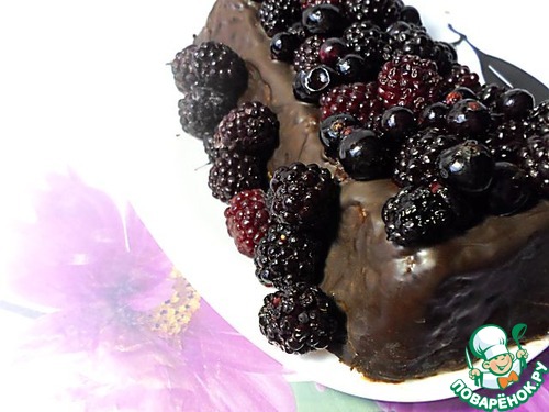 Шоколадный ангельский бисквит в глазури с ягодами
