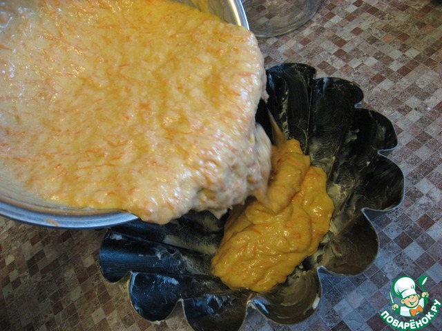 Выливаем тесто в смазанную форму и ставим в нагретую до 150 градусов духовку. Печем до сухой спички