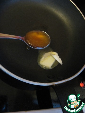 Для украшения растапливаем на сковороде масло с медом