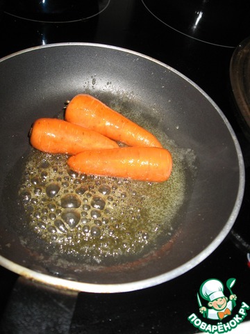 В этой смеси глазируем маленькие морковки. Огонь должен быть не сильный, чтобы морковки не сгорели и приготовились внутри