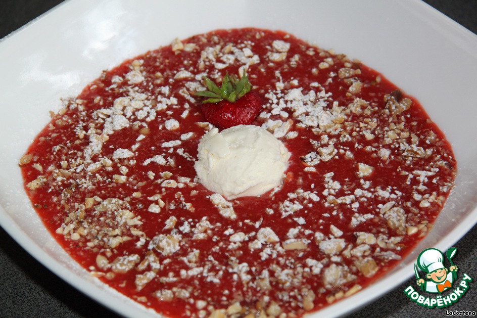 | Для меня летний суп - это прежде всего легкая текстура, немного сладости и простота в приготовлении. В этому супе-десерте присутствуют все составляющие и восхитительный вкус и аромат клубники. |