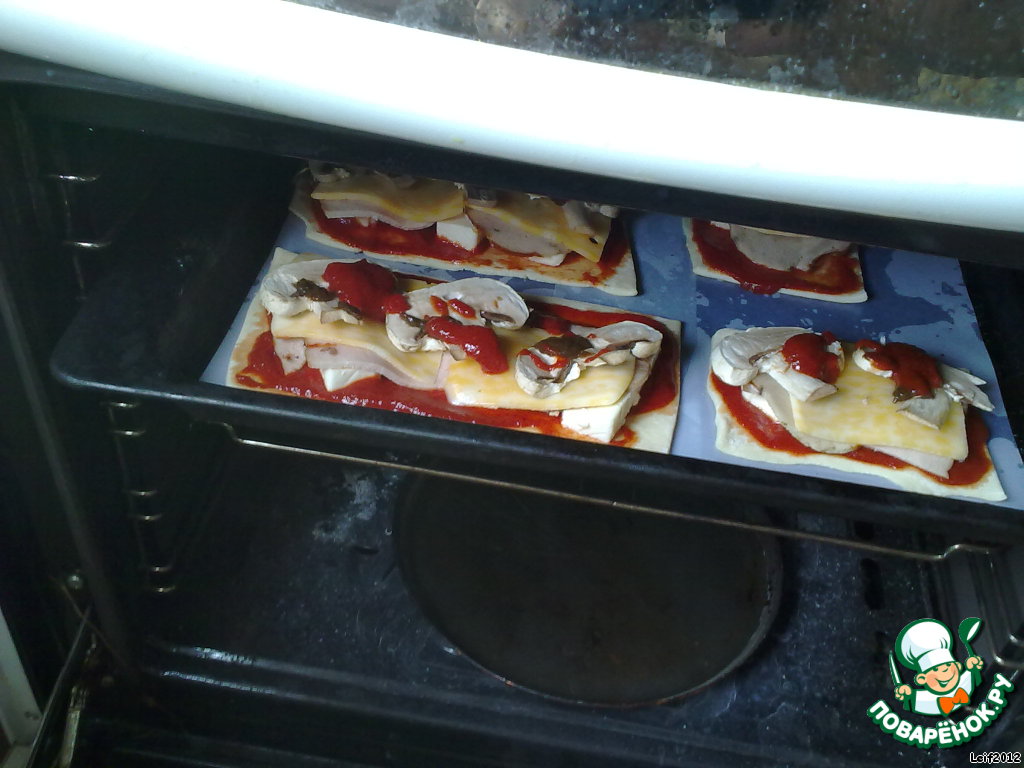 | Очень удобная, вкусная, красивая мини-пицца, делается небольшими кусочками сразу, резать ничего не надо. |