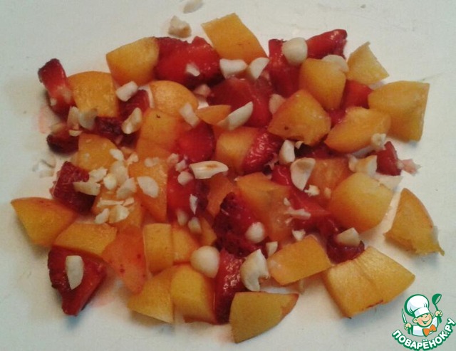 Абрикосы, клубнику и орехи измельчаем ножом.