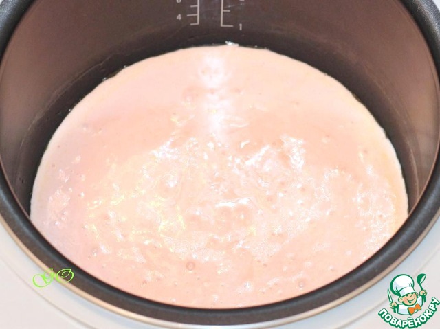 Смазываем чашу мультиварки сливочным маслом и выливаем тесто, его получается совсем немного.