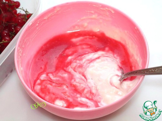 Половину ягодной смеси добавляем в сметану и перемешиваем. Сахар вы добавляете по вкусу.