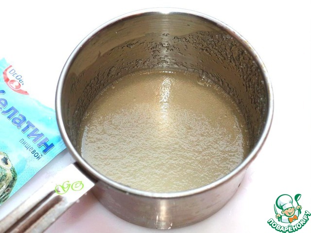 Берем желатин и заливаем его холодной, кипяченой водой, 1:6.