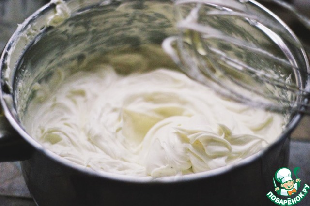 Сыр хорошо взбить с сахаром, ванильным сахаром, затем добавить сливки и еще разок взбить.