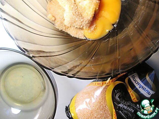 3 желтка, размягченное сливочное масло и сахар взбейте миксером в пышную массу.