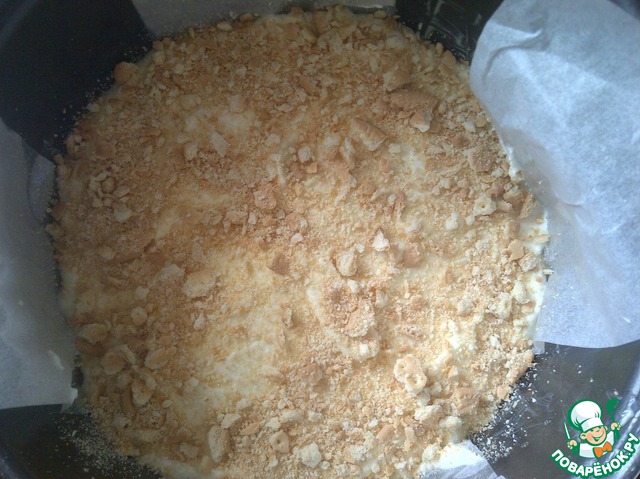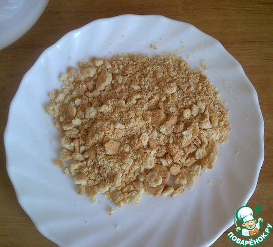 Печенье измельчить при помощи скалки. Не очень -то мелко.