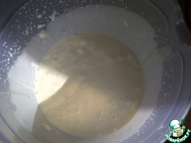 Сметану взбить с яйцом и крахмалом. Я взбивала миксером.