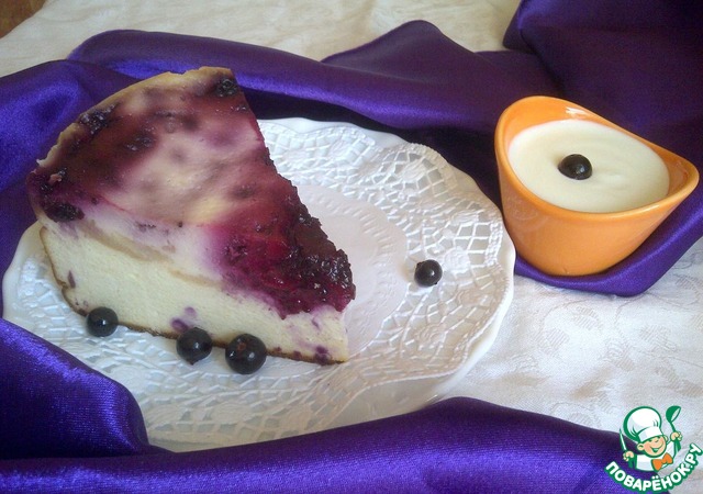 Рецепт "Творожная запеканка с печеньем и смородиново-сметанной заливкой":