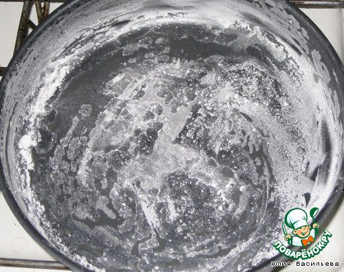 Белки следует взбить в пену с щепоткой соли. Плотность пены должна быть такой, что когда Вы вынимаете ложку, она должна застывать.