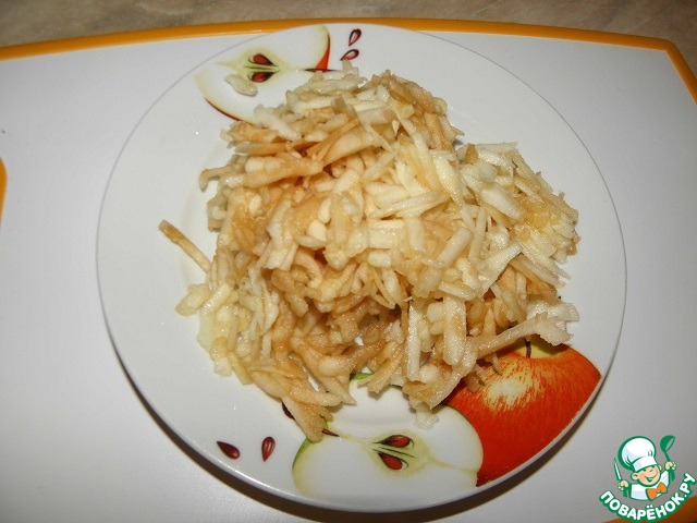 Яблоко натереть на крупной терке и сбрызнуть соком лимона