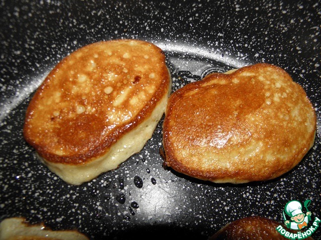 Разогреть сковороду, добавить растительное масло Идеал, и обжарить на небольшом огне оладушки, до румяной корочки.