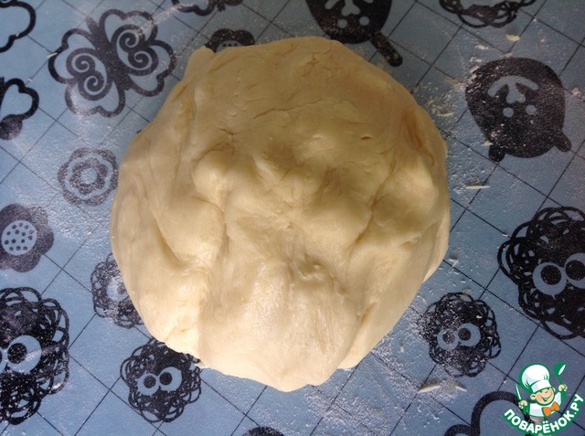 В оригинальном рецепте тесто надо раскатать в пласт на пергаменте и перенести на противень. Я же использовала форму алюминиевую d27,5.