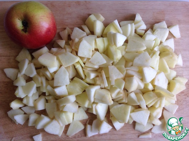 Яблоки очистить от кожицы, разрезать на 4-6 частей и нарезать ломтиками толщиной 3 мм.