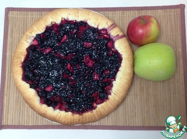На яблоки столовой ложкой выложить варенье. Поднимите свободные края пирога чтобы варенье не вытекло.