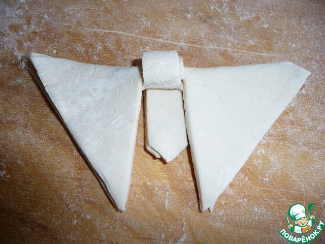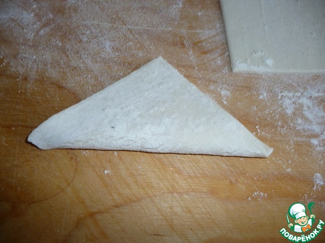 Треугольник развернуть на 180С и сделать два надреза. Излишки теста можно срезать.