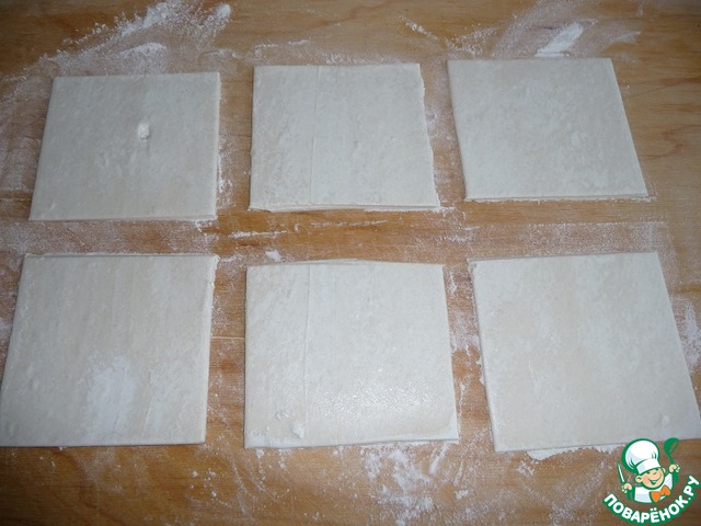 Тесто разрезать на квадраты.