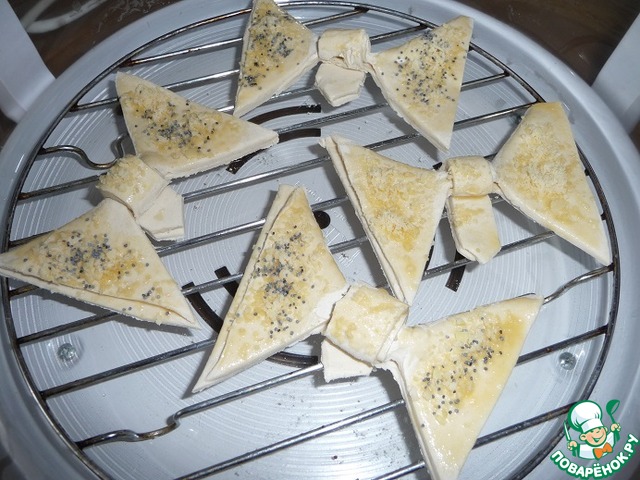 | Очень быстрое угощение для кофе и чая. Небольшое колличества слоеного теста и горсть любых орехов или мака |
