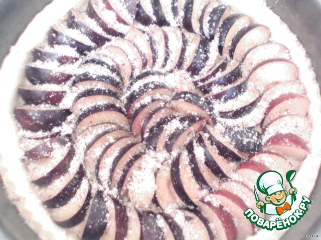 Выпекать в хорошо нагретой духовке 25 минут при 200С до золотистого цвета. Пирог готов, посыпать сахаром или сахарной пудрой.