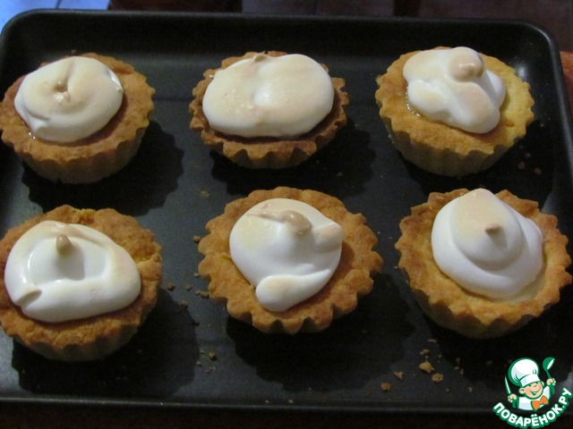 Поверх сгущенного молока отсадить из кондитерского шприца с зубчатой насадкой небольшие "горки" из безе. Если кондитерского шприца нет, то безе можно наложить чайной ложкой.