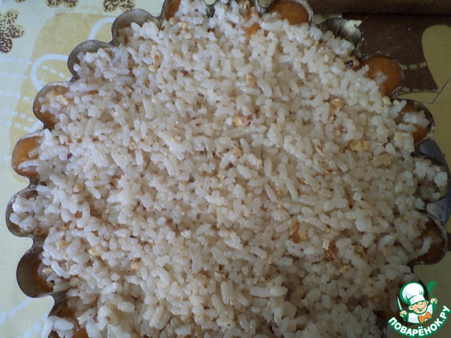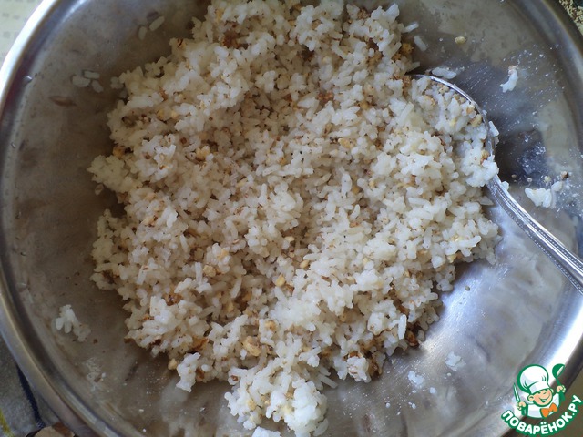 Смешать отварной рис и орехи, добавить растопленое сливочное масло.