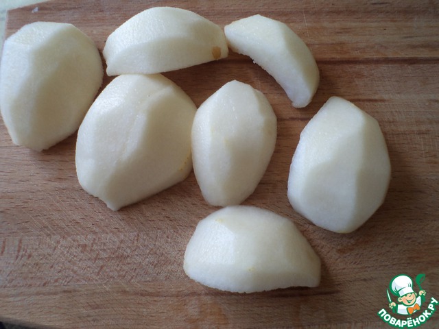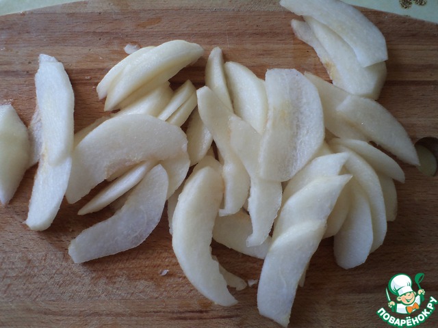 Отрезаем небольшую часть лимона и сбрызгиваем грушу для того, чтобы она не потеряла цвет.