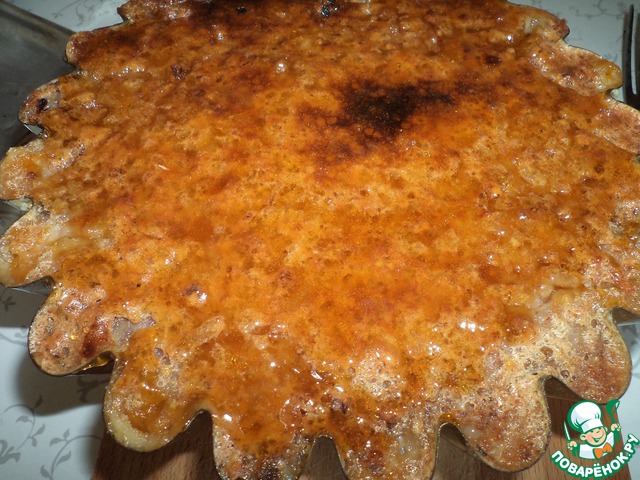 Вылить в нашу форму. Выпекать в духовке до золотистого цвета.