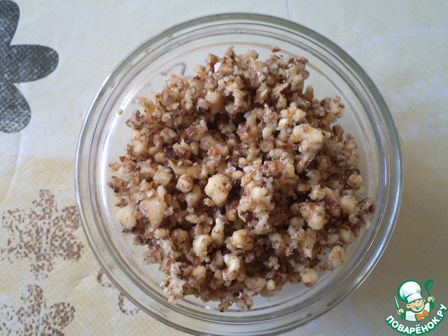 Измельчаем орехи в блендере, если нет, то можно и ножом.