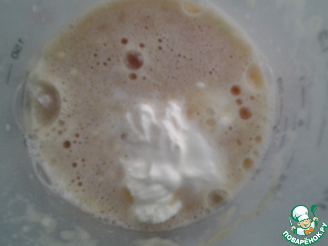 Отделим белки от желтков. Смешаем муку, соду и сахарную пудру. Добавить желтки, перемешать и постепенно влить молоко. Аккуратно ввести растопленное сливочное масло.
