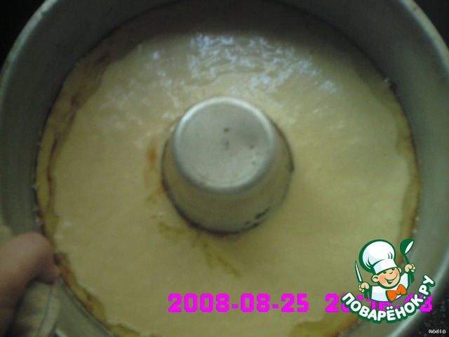 Невысокую форму ставим на противень, чтобы на нем оставалось место, если тесто будет вытекать. Я такого еще не наблюдала в своей практике. В этот раз брала кольцевую форму, но обычно пользуюсь просто сковородой. Выпекаем в разогретой до 180 град. духовке около 45 мин.