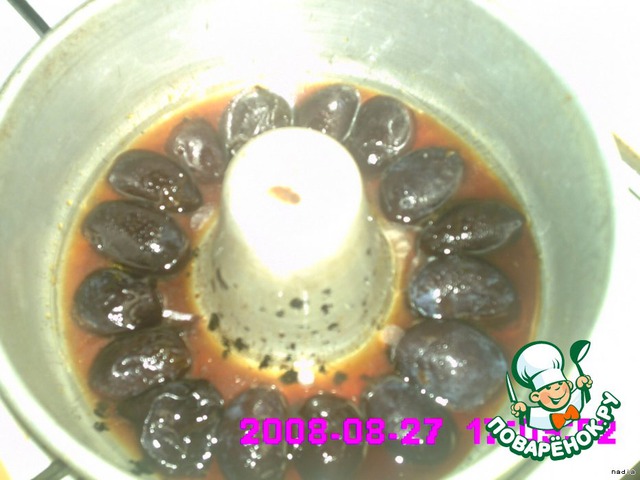 Все тщательно перемешиваем и равномерно выливаем на сливы, разравниваем.