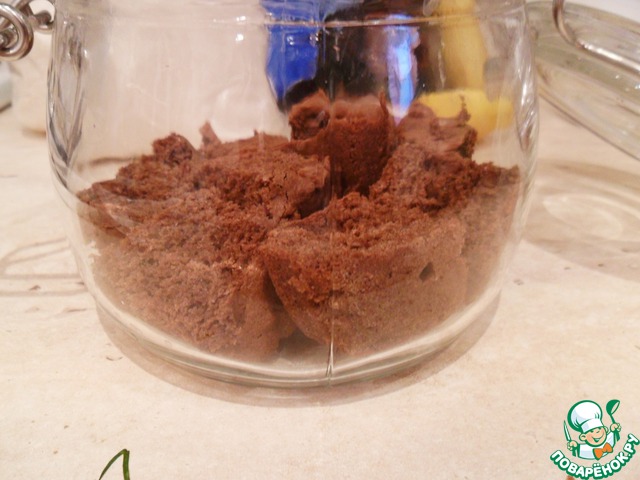 см). Я сервирую в баночки, поэтому на дно каждой выкладываю несколько кусочков бисквита.