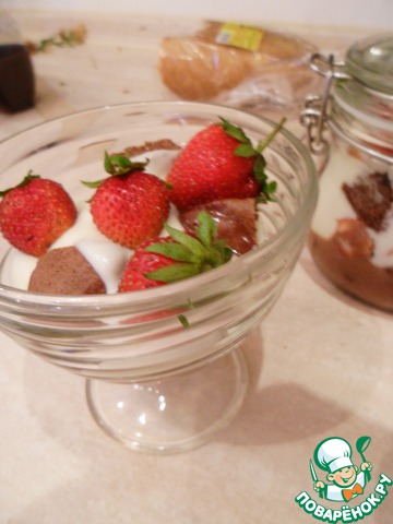 | Обожаю шоколадные десерты, и этот - не исключение. При изготовлении этого десерта пострадала всего одна плитка шоколада - но какой вкус! Вкус шоколада очень сильный. Приятная кислинка свежей клубники и смягчающий сливочный вкус заварного крема - настоящий праздник для сладкоежек. Этот десерт можно так же использовать как сладкий сюрприз для знакомых. Для этого презентуйте его встеклянных баночках, чтобы потекли слюньки при виде красивых слоев десерта! |