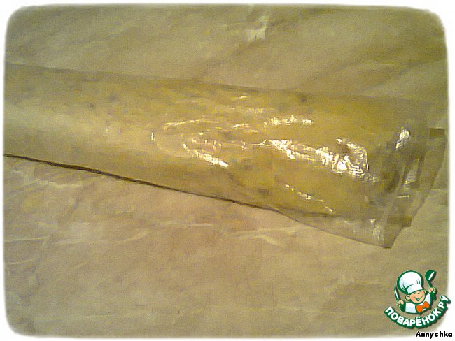 Скатать в колбаску диаметром примерно 6 см, завернуть в пленку, убрать на 2-3 часа в холодильник.