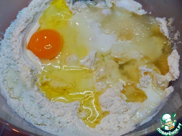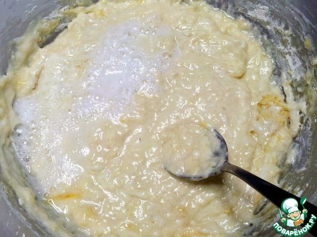 В миску налить пахту, всыпать муку, сахар, соль, ванилин, разбить яйцо и перемешать тесто.