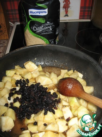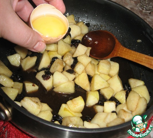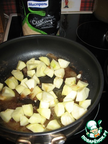 На этом этапе всыпаем яблоки и готовим их 5 минут