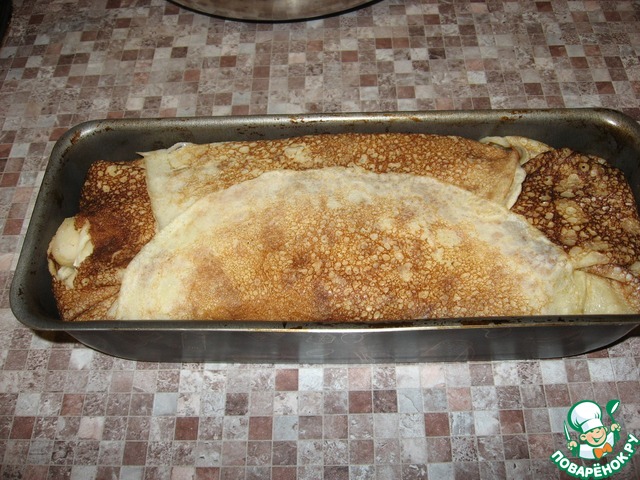 ... и свернутые пополам блинчики. Опять, начинку, и блинчики - и так до верха