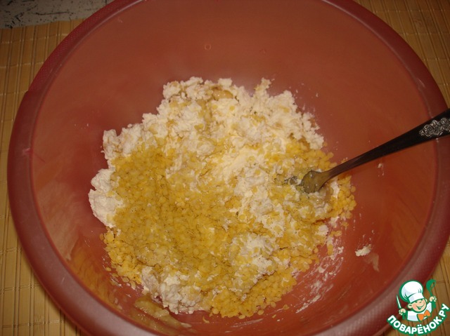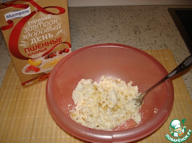 Смешать с творогом