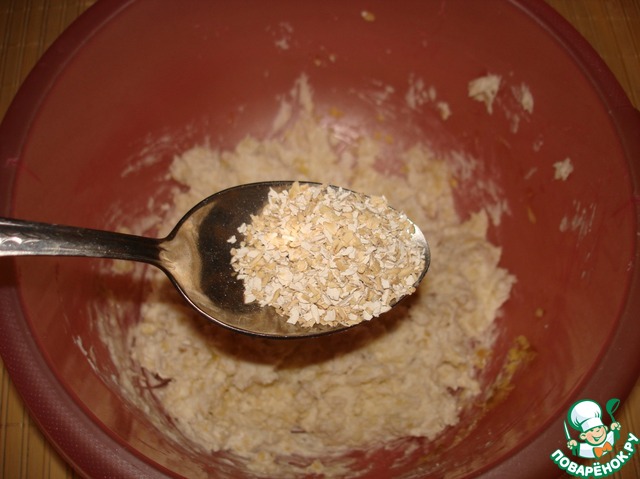 Добавить сахар, шепотку соли, пшенные хлопья. Перемешать и оставить на 10 минут