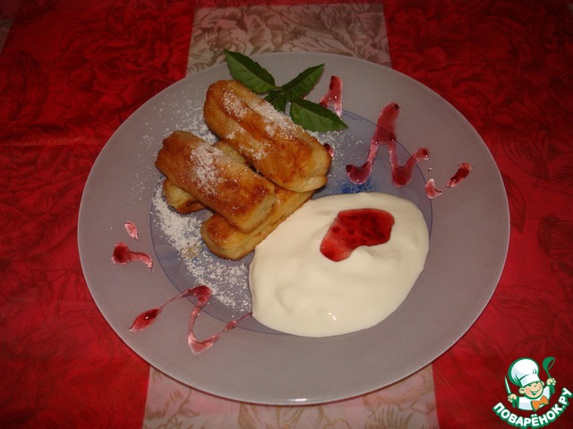 Подаем со сметаной, посыпав сахарной пудрой. Можно украсить ягодами, листиками мяты.