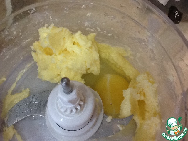 Делаем тесто. Размягченное масло перетереть с сахаром. Затем добавить яйцо и перемешать в однородную массу.