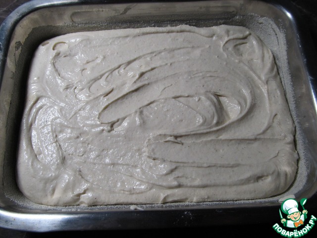 Тесто выложить в смазанную сливочным маслом или маргарином форму, посыпанную панировочными сухарями или манкой, и выпекать в разогретой духовке на среднем огне.