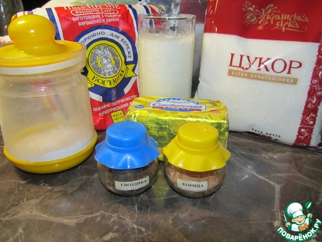 Муку смешать с пищевой содой и измельченными пряностями, добавлять в тесто попеременно с простоквашей к взбитому маргарину.